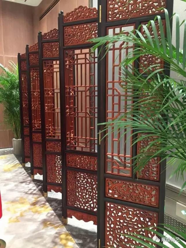 圖中的紅木屏風(fēng)分為十二扇,由名貴紅木制作而成,承制單位為中國紅木家具代表、福建名牌企業(yè)、仙作研習(xí)社社長單位——福建省輝煌仙藝古典工藝家具有限公司。